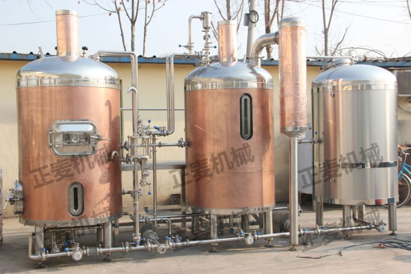 糖化系统是由糖化煮沸锅、过滤槽、漩涡沉淀槽及工艺管道组成;糖化煮沸锅为“蒸汽加热式;电加热式;燃气加热式”组成。罐体为双层保温方式“岩棉或聚氨酯”材料。加热面积足够达到麦汁煮沸蒸发量,能够有效阻止热能耗的外泄。罐体内部采用国际标准不锈钢精加工而成;外部采用不锈钢或紫铜镜面板组成,古朴典雅的外观造型;即酿出美妙佳酿还有艺术品的象征。糖化煮沸锅顶部加装搅拌系统能使醪液均匀糖化;过滤槽顶部加装耕刀系统保证醪液匀速过滤避免氧化。漩涡沉淀系统;采用切线及离心力的作用能够彻底的分离出多余的蛋白质及杂质,达到成熟麦汁的纯净度。
