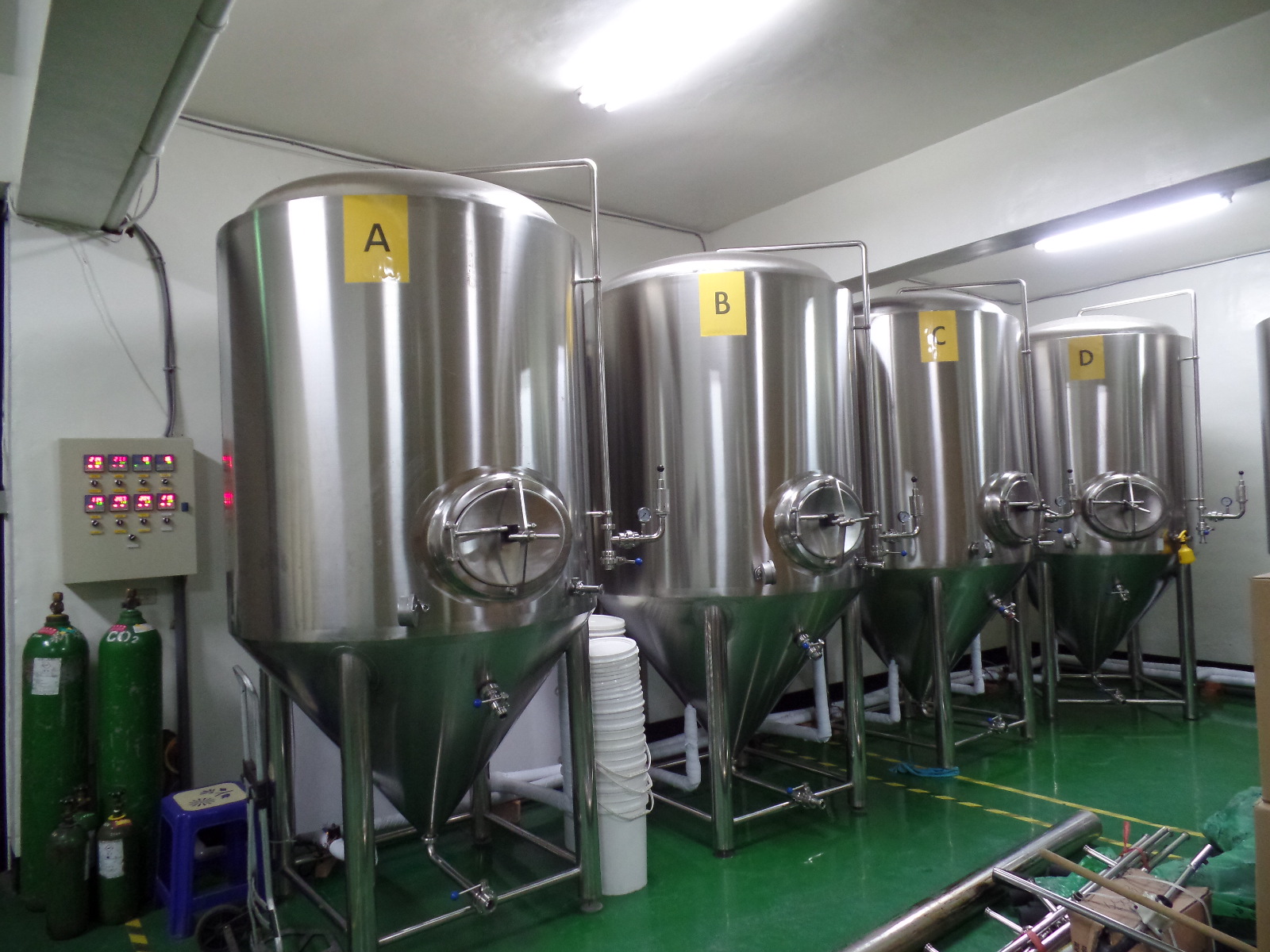 啤酒发酵系统有发酵罐、清酒罐、暂存罐组成;发酵是啤酒生产中极其重要的工艺过程。是一个有酵母参与的复杂的生化反应过程,发酵罐为锥底圆柱形,罐体具备自身冷却装置,可很容易地控制发酵温度;罐底为锥形,回收酵母及清洗都很方便;罐体具有CIP清洗系统,保证了生产中的卫生安全。具备了先进的国际发酵工程技术,可采用PLC自动控温技术。全过程控制啤酒发酵。