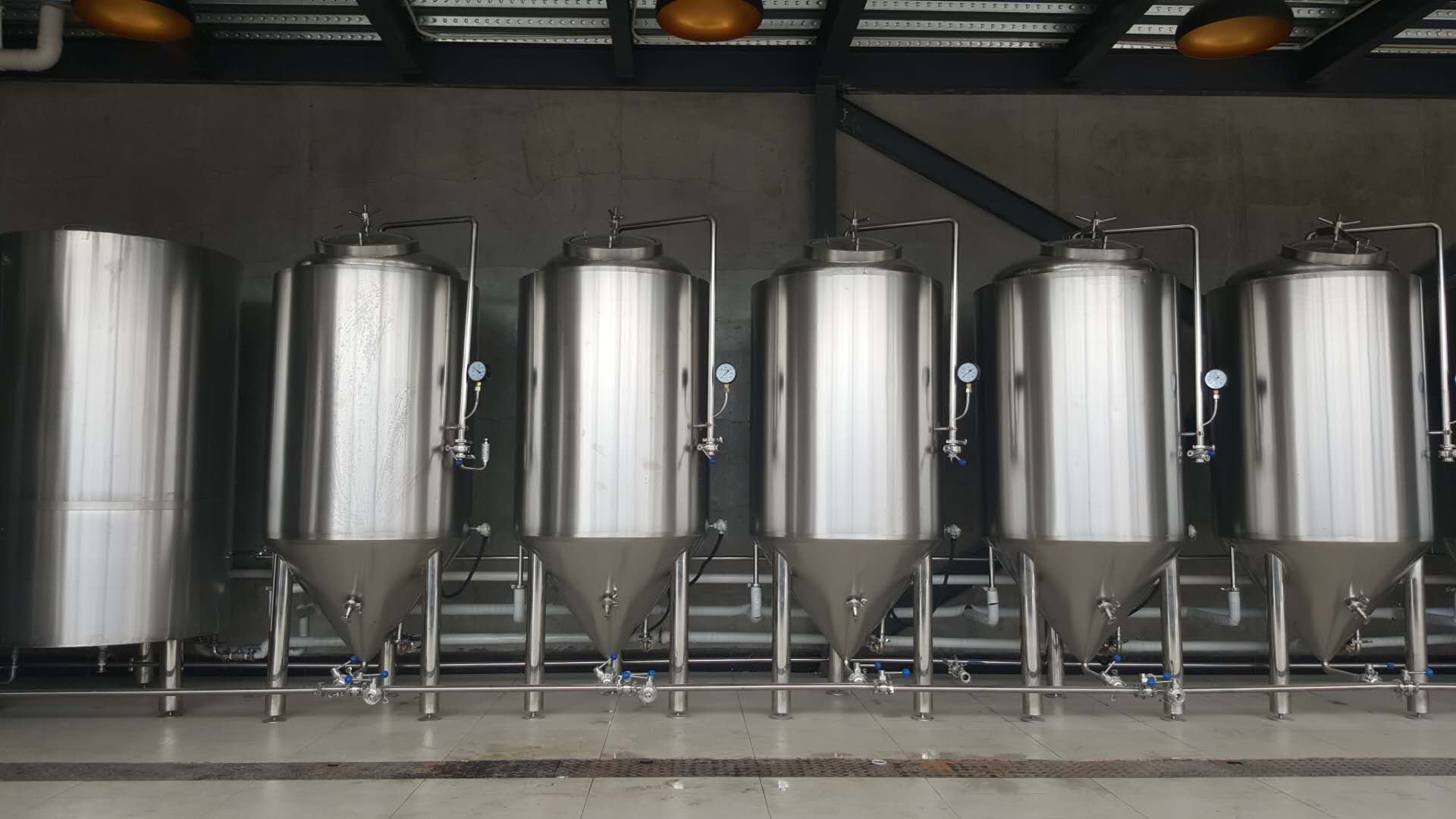 啤酒发酵系统有发酵罐、清酒罐、暂存罐组成;发酵是啤酒生产中极其重要的工艺过程。是一个有酵母参与的复杂的生化反应过程,发酵罐为锥底圆柱形,罐体具备自身冷却装置,可很容易地控制发酵温度;罐底为锥形,回收酵母及清洗都很方便;罐体具有CIP清洗系统,保证了生产中的卫生安全。具备了先进的国际发酵工程技术,可采用PLC自动控温技术。全过程控制啤酒发酵。