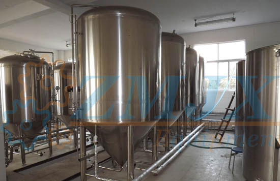 啤酒发酵系统有发酵罐、清酒罐、暂存罐组成;发酵是啤酒生产中极其重要的工艺过程。是一个有酵母参与的复杂的生化反应过程,发酵罐为锥底圆柱形,罐体具备自身冷却装置,可很容易地控制发酵温度;罐底为锥形,回收酵母及清洗都很方便;罐体具有CIP清洗系统,保证了生产中的卫生安全。具备了先进的国际发酵工程技术,可采用PLC自动控温技术。全过程控制啤酒发酵。