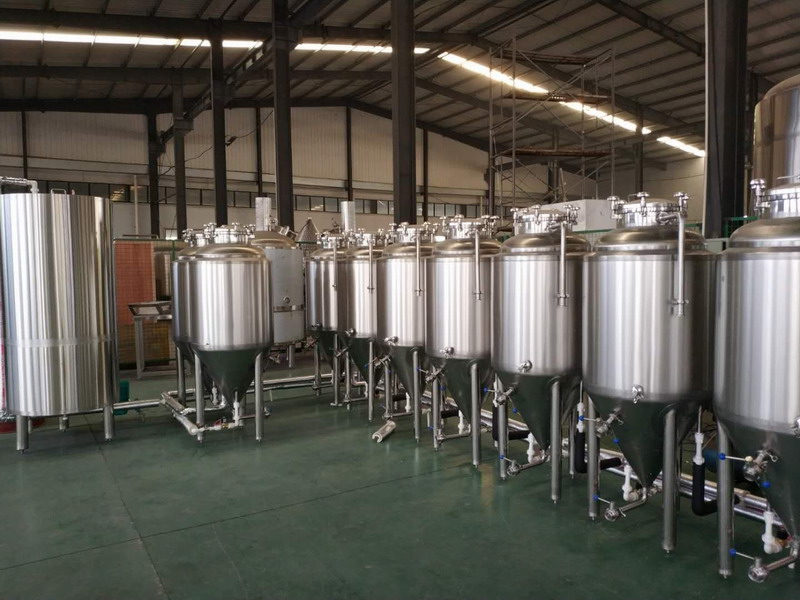 啤酒发酵系统有发酵罐、清酒罐、暂存罐组成;发酵是啤酒生产中极其重要的工艺过程。是一个有酵母参与的复杂的生化反应过程,发酵罐为锥底圆柱形,罐体具备自身冷却装置,可很容易地控制发酵温度;罐底为锥形,回收酵母及清洗都很方便;罐体具有CIP清洗系统,保证了生产中的卫生安全。具备了先进的国际发酵工程技术,可采用PLC自动控温技术。全过程控制啤酒发酵。